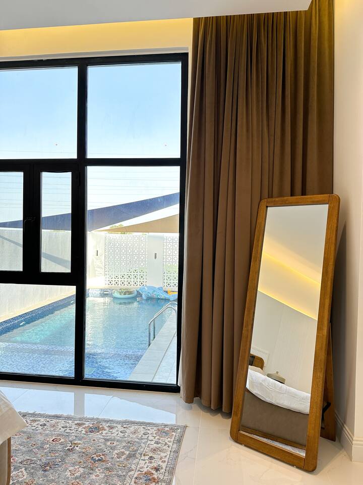 First of all a huge thank you to Abdulla for his kindness and great hospitality. Oman is a country I continue to come to and the hospitality is one of the biggest reasons! He was always making sure we’re comfortable in our stay. The chalet itself is beautiful, aesthetic and clean. The pool was immaculate and just what we needed this summer! We had an amazing time and saddened we had to leave! I would definitely recommend it to everyone! You’ll not be disappointed. Thank you Abdulla! الله يجزاك خير، مشكور